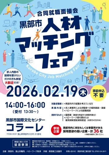 【2月19日(木)】黒部市人材マッチングフェア(合同就職面接会・企業説明会)を開催します。