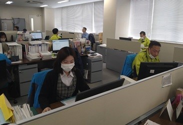 従業員と一緒に役員も同じフロアで勤務しています。働く人同士がとても距離が近く、常に相談しあいながら業務に励んでいます。