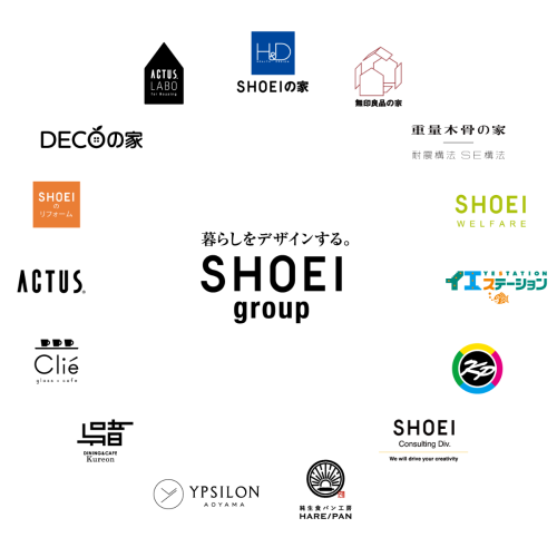 SHOEIグループは、建築・インテリア・不動産・リフォーム・コンサルティング・飲食・介護など、富山の『生活文化』を支える多彩な事業を展開しています。