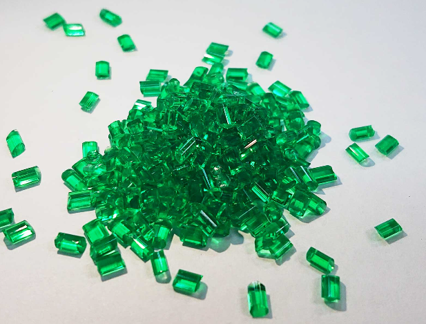 お客様のもとにあるリサイクル材としてご利用になる樹脂を引き取り、樹脂の選別から粉砕、必要に応じて着色をしたあとペレット加工を行い製品として出荷します。お客様のご要望にお応えし、新たな製品として生まれ変わります。