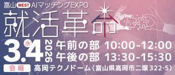 令和8年3月4日(水)に高岡テクノドームで開催されます富山WEST「AIマッチングEXPO-就活革命」に参加します。