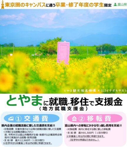 【地方就職支援金】東京圏の大学生等の皆さんへ 富山県内への就職・移住する際の支援金を支給します