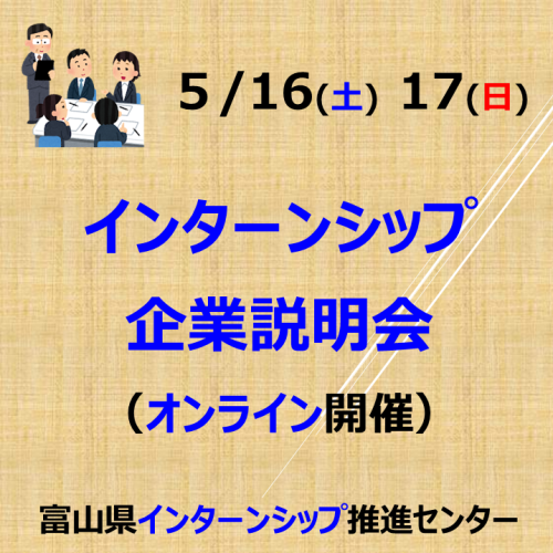 企業の皆様へ 【 5/16(土)、17(日)】 「富山県インターンシップ企業説明会」を開催します!