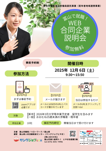 【26卒・一般対象】2025/12/6(土)「富山で就職!WEB合同企業説明会」を実施します!