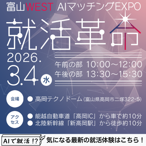 【3月4日(水) 合同企業説明会参加者募集!】「富山WEST AIマッチングEXPO 就活革命」