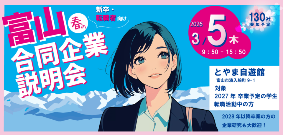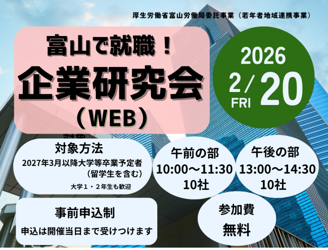 【27卒以降対象】2026/2/20(金)「富山で就職!企業研究会(WEB)」を開催します!